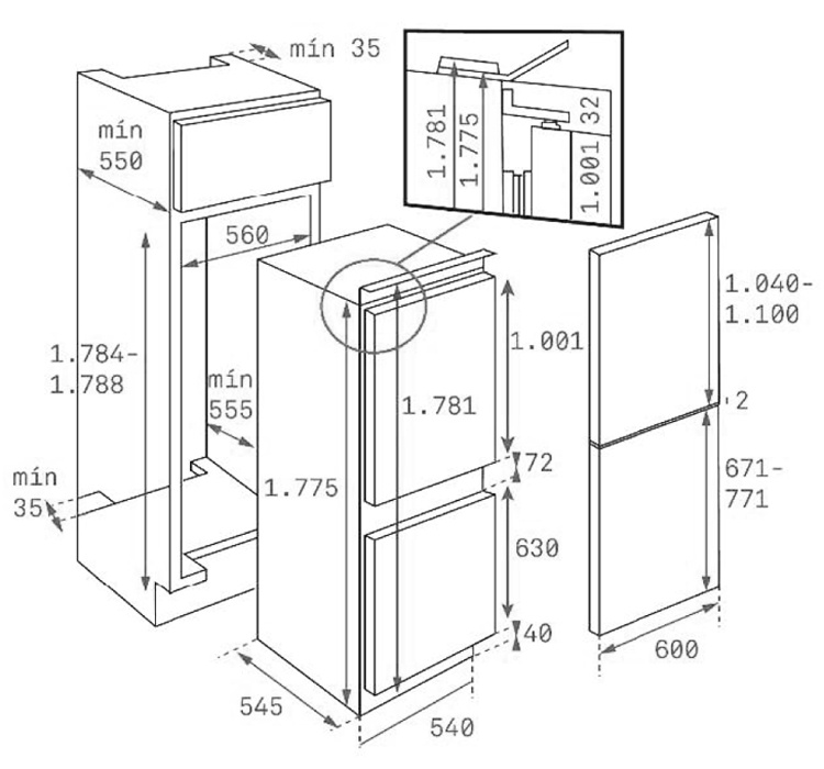 | Габариты ниши встраивания (ВхШхГ) | 178.4-178.8х56х55.5 см |