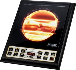 Галогенные конфорки также расположены под стеклокерамическим покрытием, выполнены в виде улиткообразной высокотемпературной спирали. Лампа, наполненная галогеном, находится рядом. Лампа работает при разогреве. Она испускает инфракрасные волны, передающие теплоту от элемента нагрева.