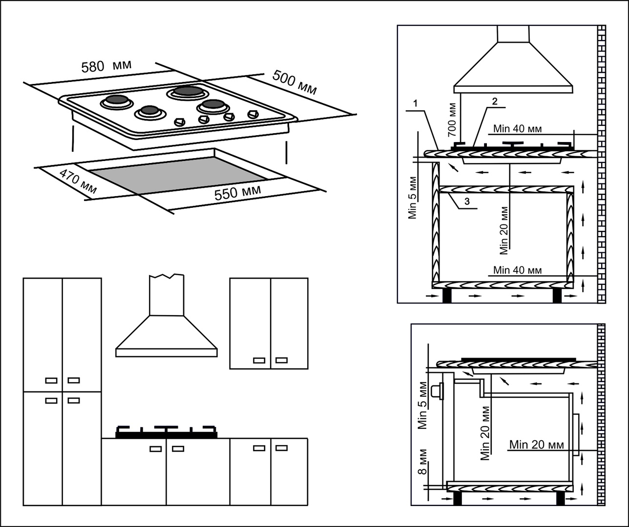 Размеры ниши (ВхШхГ) 150х550х470 мм