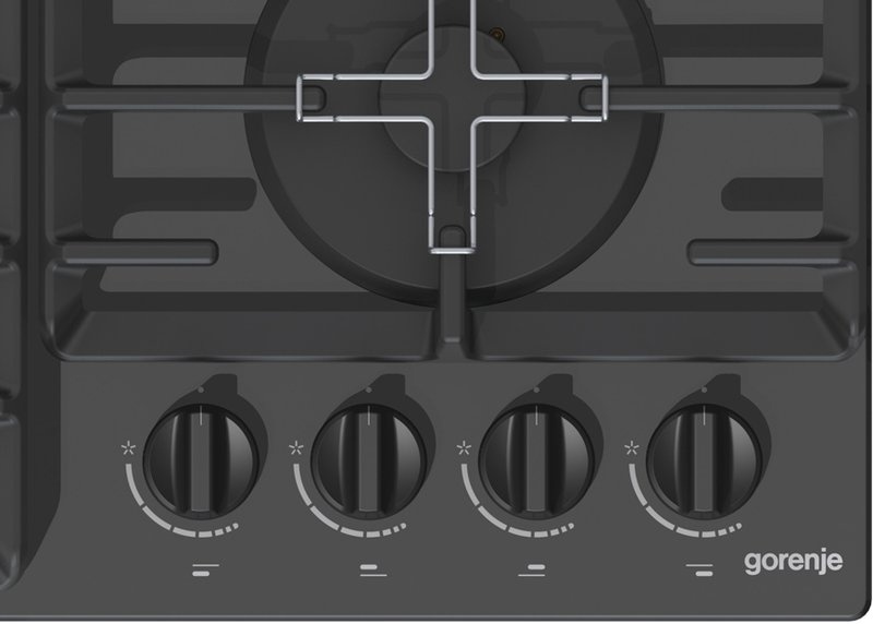 Независимая газовая варочная панель Gorenje GT641B — модель из коллекции «газ на стекле» выполнена в черном цвете. За поверхностью легко ухаживать, достаточно протирать ее влажной тряпкой, чугунные решетки хорошо чистятся. Автоматический электроподжиг включается поворотом регулятора. Газ-контроль обеспечивает безопасность использования, так как перекрывает подачу газа, если пламя гаснет.