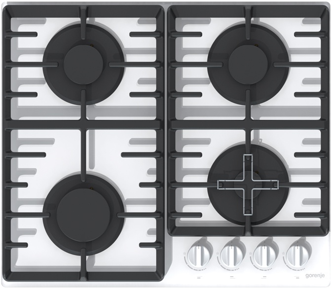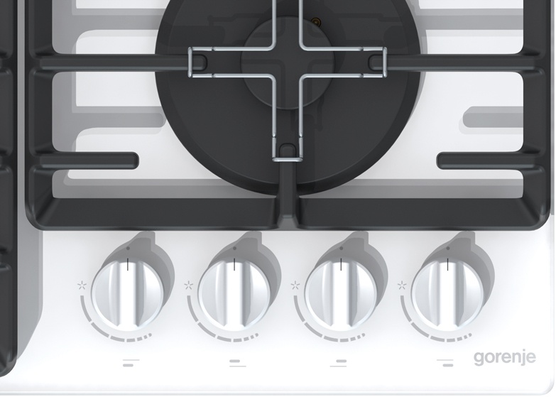 Независимая газовая варочная панель Gorenje GT641W имеет поверхность из белого закаленного стекла. Она эффектно смотрится в сочетании с массивными чугунными решетками ProGrids. Эргономичные регуляторы расположены сбоку, рядом с экономичной горелкой. Электроподжиг включается поворотом ручки. Газ-контроль перекрывает подачу топлива, если пламя гаснет, что гарантирует безопасность.