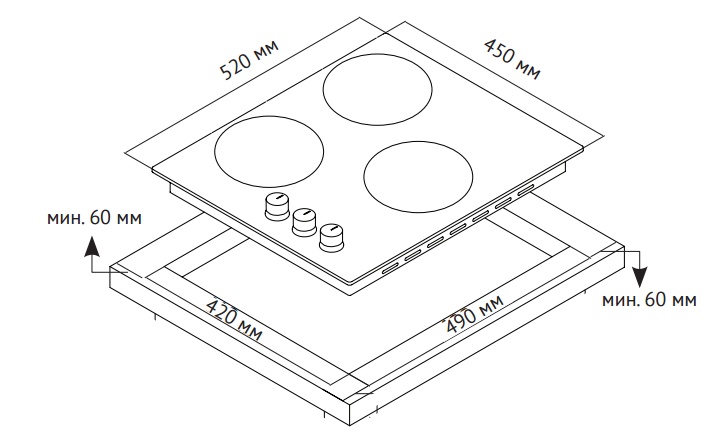 | Правая | сверхмощная конфорка WOK 3,0 кВт |