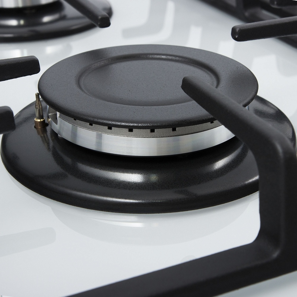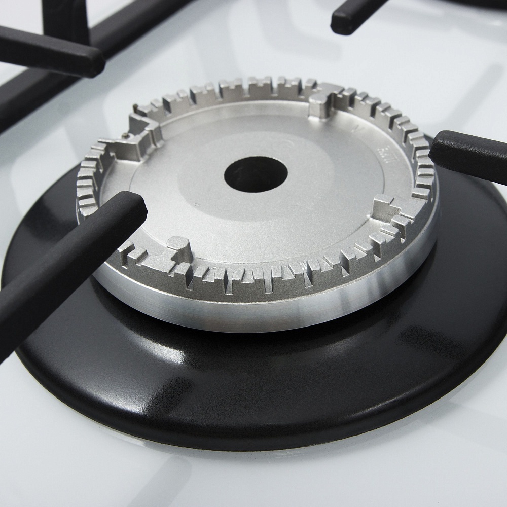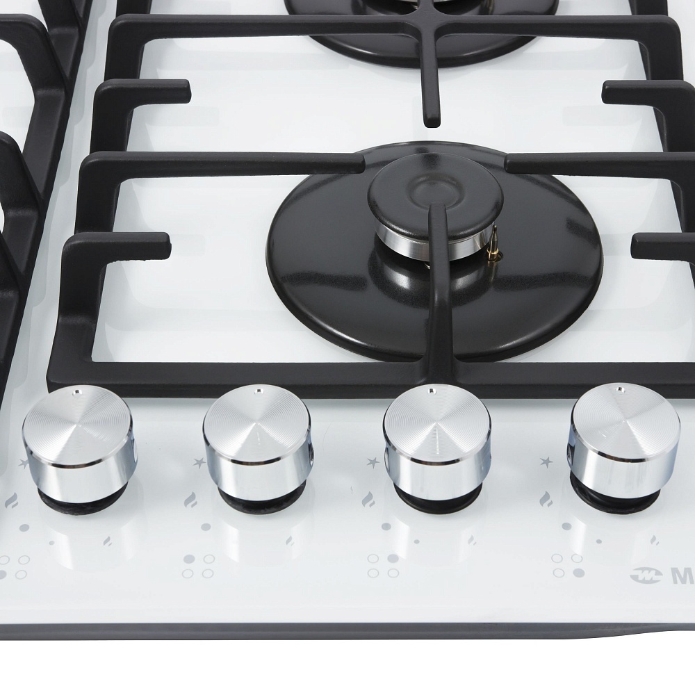 Газовая варочная панель Mainfeld EGHG.64.3CW/G из серии Light представлена в классическом белом цвете. Материал рабочей поверхности — жароустойчивое стекло. Оно способствует быстрому и легкому удалению загрязнений. Автоматический электроподжиг позволяет начать работу без использования спичек или зажигалок. Чугунные решетки с особой конструкцией обеспечивают устойчивое положение посуды на панели.