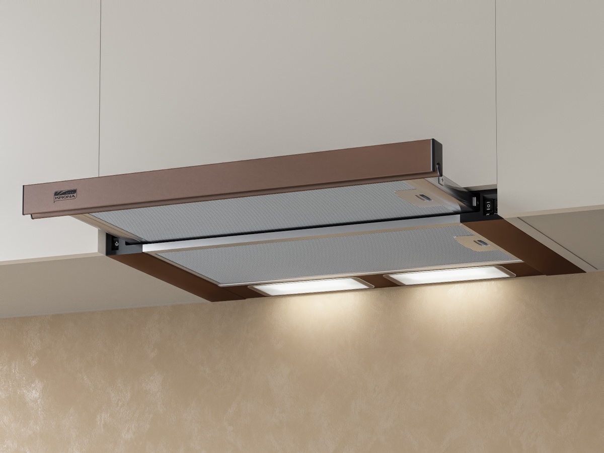 Компактный моторный блок, встраиваемый в шкаф над плитой (всего 135 мм в высоту)