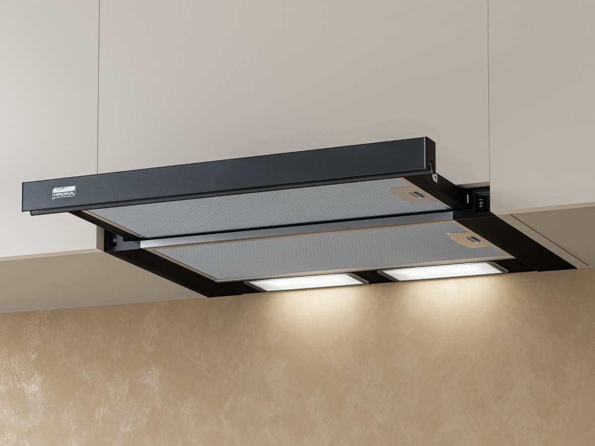 • Компактный моторный блок, встраиваемый в шкаф над плитой (всего 135 мм в высоту)