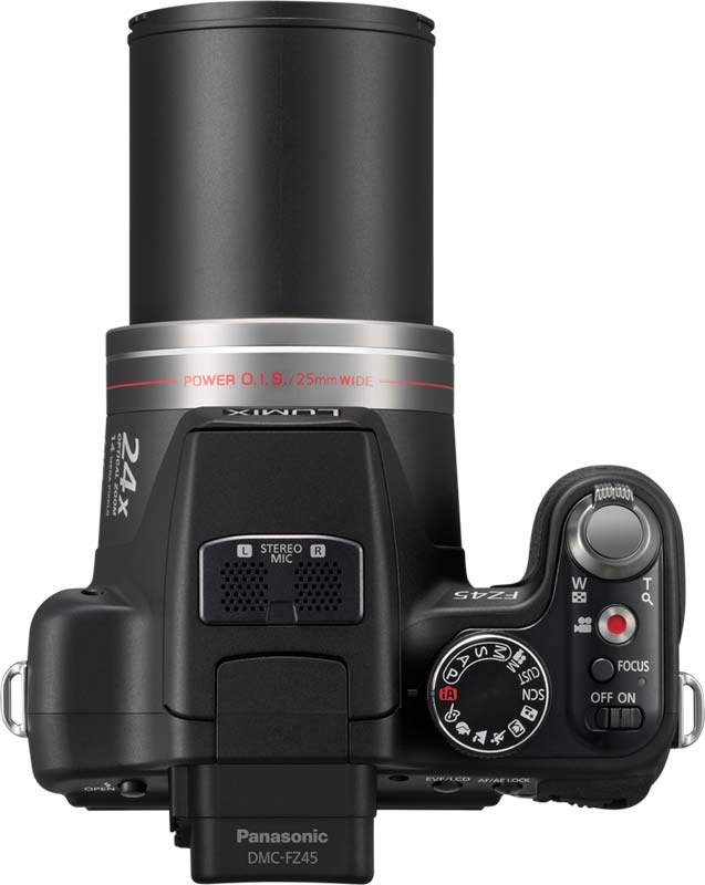 DMC-FZ45 оборудована мощным 24-кратным широкоугольным зум-объективом Leica DС Vario-Elmarit. Минимальное фокусное расстояние объектива равняется 25 мм, что делает камеру очень эффективным творческим инструментом при съемке в ограниченном помещении или на узкой улочке. Модель также может с успехом использоваться и для любых других жанров от пейзажа до фотоохоты. Минимальная дистанция фокусировки в режиме макро составляет всего 1 см (широкоугольное положение зума), что позволяет осуществлять съемку самых миниатюрных объектов. Оптическая схема объектива содержит 14 элементов в 10 группах. В конструкцию входят два элемента из стекла со сверхнизкой дисперсией, а также три асферических линзы. Благодаря продвинутой оптике камера формирует высококачественные изображения, практически лишенные таких искажений, как дисторсия и хроматизм, чем выгодно отличается от многих других ультразумов. Камера оснащена новой системой стабилизации POWER O.I.S., которая в два раза эффективнее предыдущей версии стабилизатора MEGA O.I.S. Оптический стабилизатор увеличивает диапазон возможных выдержек при съемке с рук, а также сохраняет хорошую резкость фотографий на максимальных значениях фокусного расстояния. Помимо оптического, у камеры имеется 4-кратный цифровой зум, хотя его применение может несколько снизить качество конечного снимка.