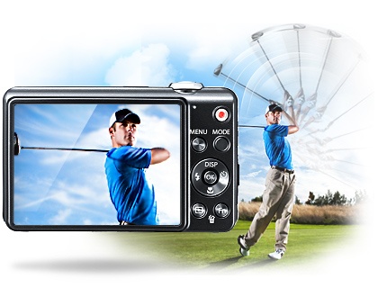 Ни одна деталь удара голфиста по мячу не ускользнет от Вас. Функция ускоренной съемки фотокамеры ST96 позволяет запечатлеть все детали движения. Последующее воспроизведение со скоростью 3, 5 или даже 10 кадров в секунду дает возможность просмотреть движение в замедленном темпе.