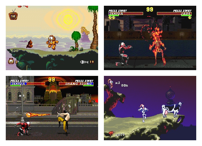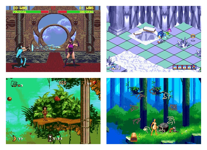 | 2D/3D игры с популярных игровых приставок 8bit, 16bit таких как | NES (Dendy, Lifa), Game Boy (Color, Advance), SEGA (Mega Drive, Genesis), игровые автоматы Capcom, Neo-Geo и других |