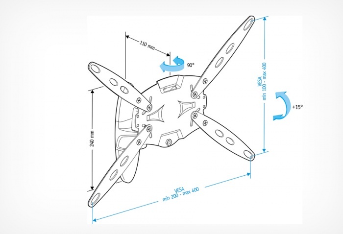 Функциональный кронштейн дает возможность менять угол наклона и поворота телевизора. Вы сможете смотреть телевизор с полным комфортом независимо от того, в каком месте комнаты находитесь. Такие кронштейны, например, идеально подходят для студий или для размещения в углу комнаты.