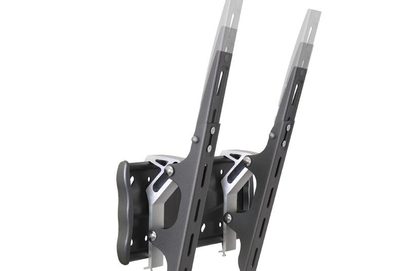 Если планировка Вашей комнаты предполагает расположение телевизора высоко от пола, то лучше использовать наклонные кронштейны. Угол наклона обеспечит максимальный комфорт во время просмотра телевизора и избавит от световых бликов.