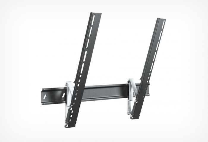 Если планировка Вашей комнаты предполагает расположение телевизора высоко от пола, то лучше использовать наклонные кронштейны. Угол наклона обеспечит максимальный комфорт во время просмотра телевизора и избавит от световых бликов.