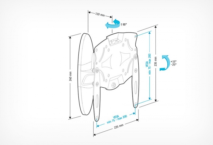 Функциональный кронштейн дает возможность менять угол наклона и поворота телевизора. Вы сможете смотреть телевизор с полным комфортом независимо от того, в каком месте комнаты находитесь. Такие кронштейны, например, идеально подходят для студий или для размещения в углу комнаты.