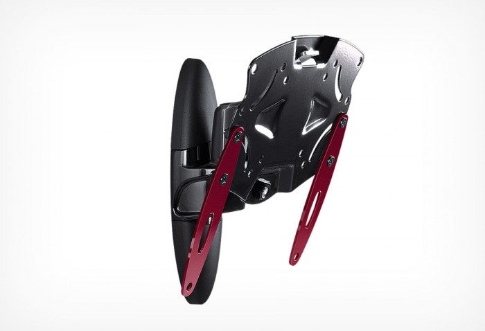 сочетается с техникой. Благодаря стильному цветовому решению (черный глянец и малиновые детали) кронштейн идеально сочетается с дизайном современных телевизоров.
