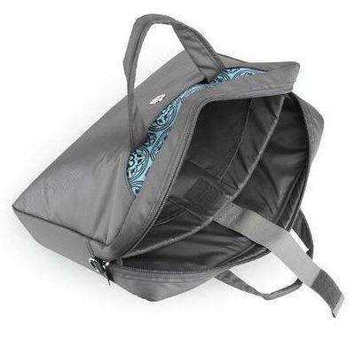 Включает в себя специальный отсек для ноутбука с противоударными стенками и фиксирующимся ремешком, а так же просторное отделение для личных вещей.