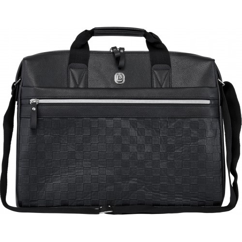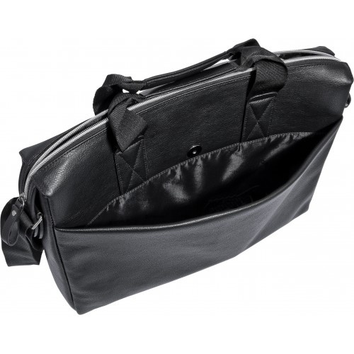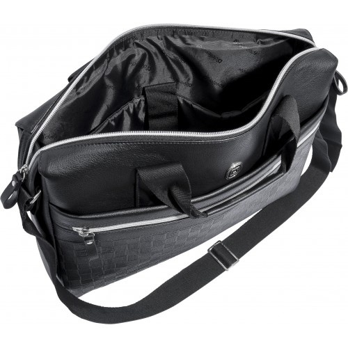 Включает в себя специальный отсек для ноутбука с противоударными стенками и фиксирующимся ремешком, а так же просторное отделение с карманом для мелочей.