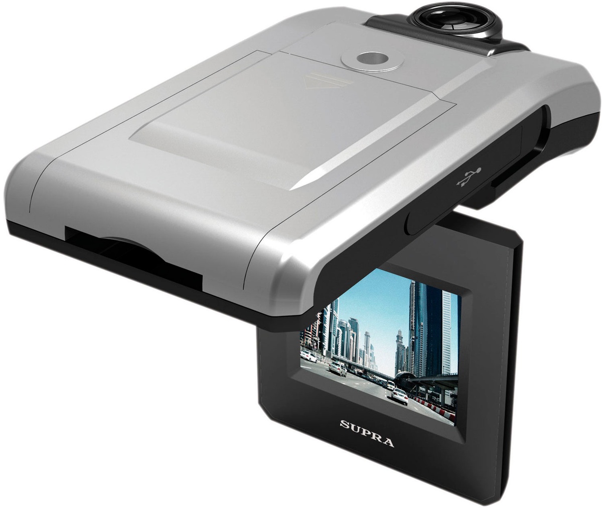 В ней предусмотрен поворот объектива на 180 градусов. Также видеорегистратор Supra SCR 750 может быть полезен во время движения автомобиля вечером или ночью: при ночной съемке поможет встроенная подсветка.