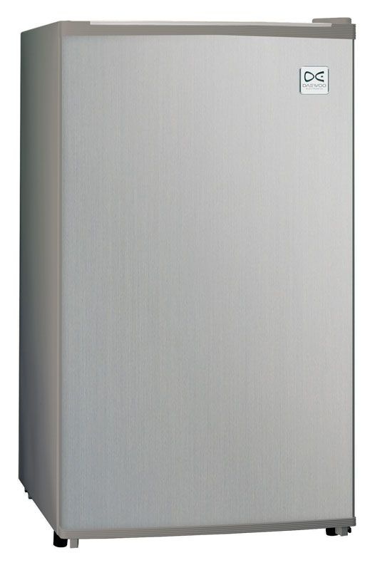 Компактный холодильник Daewoo Electronics FR-082AIXR без морозильной камеры. Представлен в серебристом цвете.