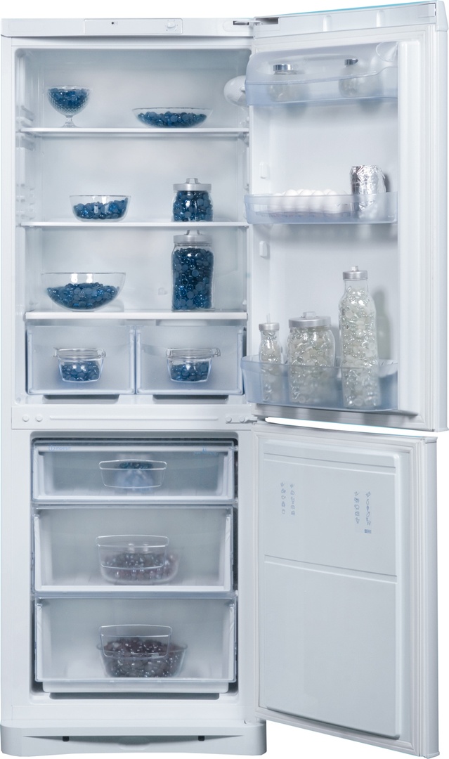 Бытовой холодильник Indesit B16 S имеет две камеры, каждая из которых оборудована отдельной дверцей – для раздельного хранения замороженных и охлажденных продуктов. Он рассчитан на хранение 305 литров продуктов. Морозильная камера расположена в нижней части холодильника. Температура в морозильной камере составляет -18 градусов, и может опускаться еще ниже – в зависимости от того, как Вам необходимо заморозить продукты. Есть возможность автоматического размораживания морозильной камеры.