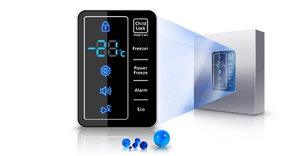 Современный синий светодиодный дисплей удачно вписывается во внешний вид корпуса, делая дизайн более привлекательным и практичным. На его удобном для чтения экране можно контролировать температуру и режимы холодильника, даже не открывая дверь.