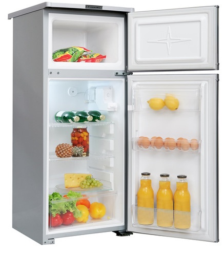 Двухкамерный холодильник с верхним расположением морозильной камеры.
