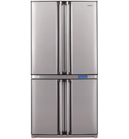 Sharp представляет холодильник с четырьмя симметрично расположенными дверьми, в котором благодаря уникальному дверному механизму отсутствует вертикальная центральная перегородка в холодильной камере, что позволило оптимизировать внутреннее пространство холодильной камеры.