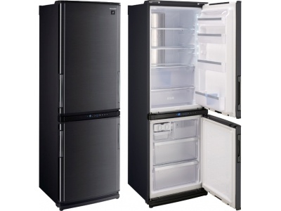 Холодильники SHARP с нижним расположением морозильной камеры имеют уникальный механизм двустороннего открывания дверей (система Dual Swing Door), который позволяет открывать двери холодильной и морозильной камер как вправо, так и влево, как удобно пользователю, без перенавешивания.
