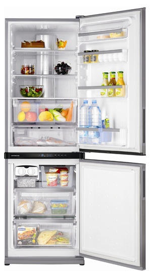 Холодильники SHARP с нижним расположением морозильной камеры имеют уникальный механизм двустороннего открывания дверей (система Dual Swing Door), который позволяет открывать двери холодильной и морозильной камер как вправо, так и влево, как удобно пользователю, без перенавешивания.