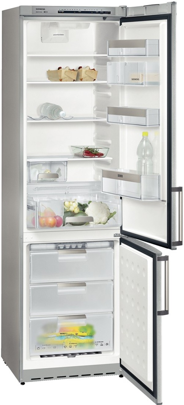 Холодильник Siemens KG 39 SA 70 имеет спербольшой бокс для овощей и фруктов, который легко выдвигается даже в полностью загруженном состоянии благодаря телескопическим полозьям. Бокс вмещает даже крупные овощи или фрукты, а вынимаемый разделитель помогает распределить продукты так, как Вам это удобно.
