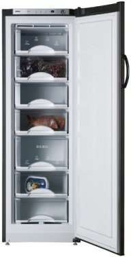 Особенно порадует корзина увеличенного объема BIG BOX. В этой корзине можно замораживать до 14 (!) килограмм свежих продуктов в сутки. Для этого необходимо предварительно включать режим «Замораживание», предусмотренный в морозильнике, при котором температура в морозильнике понижается с -18°С до -24°С. При включении этого режима можно одновременно замораживать в любых двух корзинах, кроме нижней, свежие продукты массой до 24 килограмм.