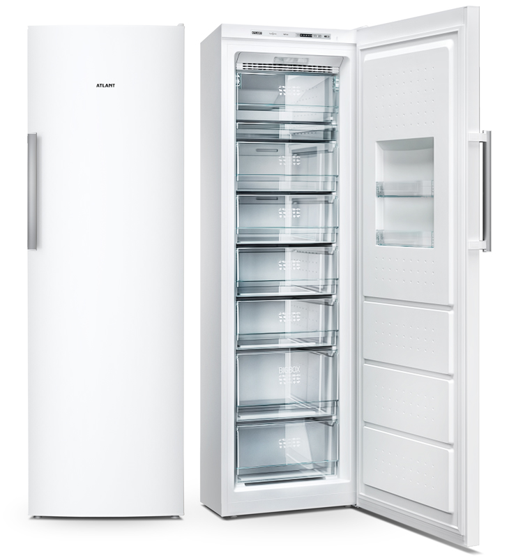 Устанавливать температуру в морозильнике в диапазоне от -16 до -26° С позволяет электронный блок управления. Значение температуры отображается на цифровом индикаторе блока. В модели предусмотрена звуковая сигнализация (при открытой более 60 секунд двери).