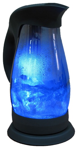 При закипании чайник отключается самостоятельно, так как предусмотрена индикация включения. Очень красиво реализована подсветка воды, в темноте вода светится голубым светом.