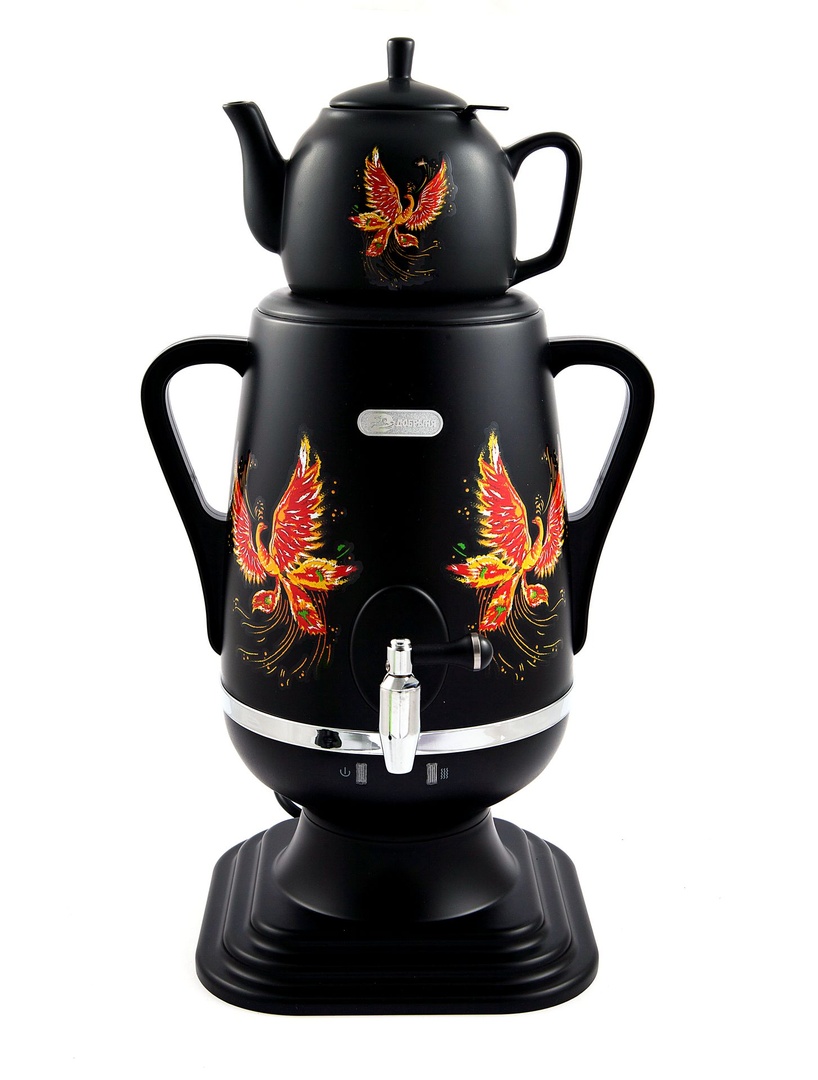 Самовар ДО-422 (4,0л) фарфоровый черный заварник (1,0л) Птица.