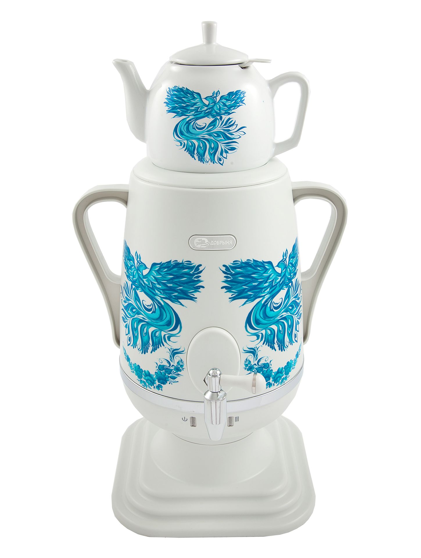 Самовар ДО-426 (4,0л) фарфоровый черный заварник (1,0л) Птица2.