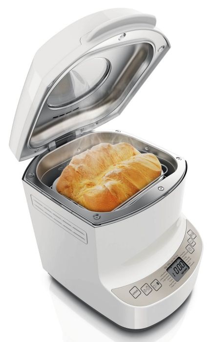 Хлебопечь отличается продуманным дизайном. Она работает очень тихо (55 дБа), а значит разбудит Вас только запахом свежего хлеба, а не шумом. Компактная форма позволяет разместить ее на любой современной кухне.