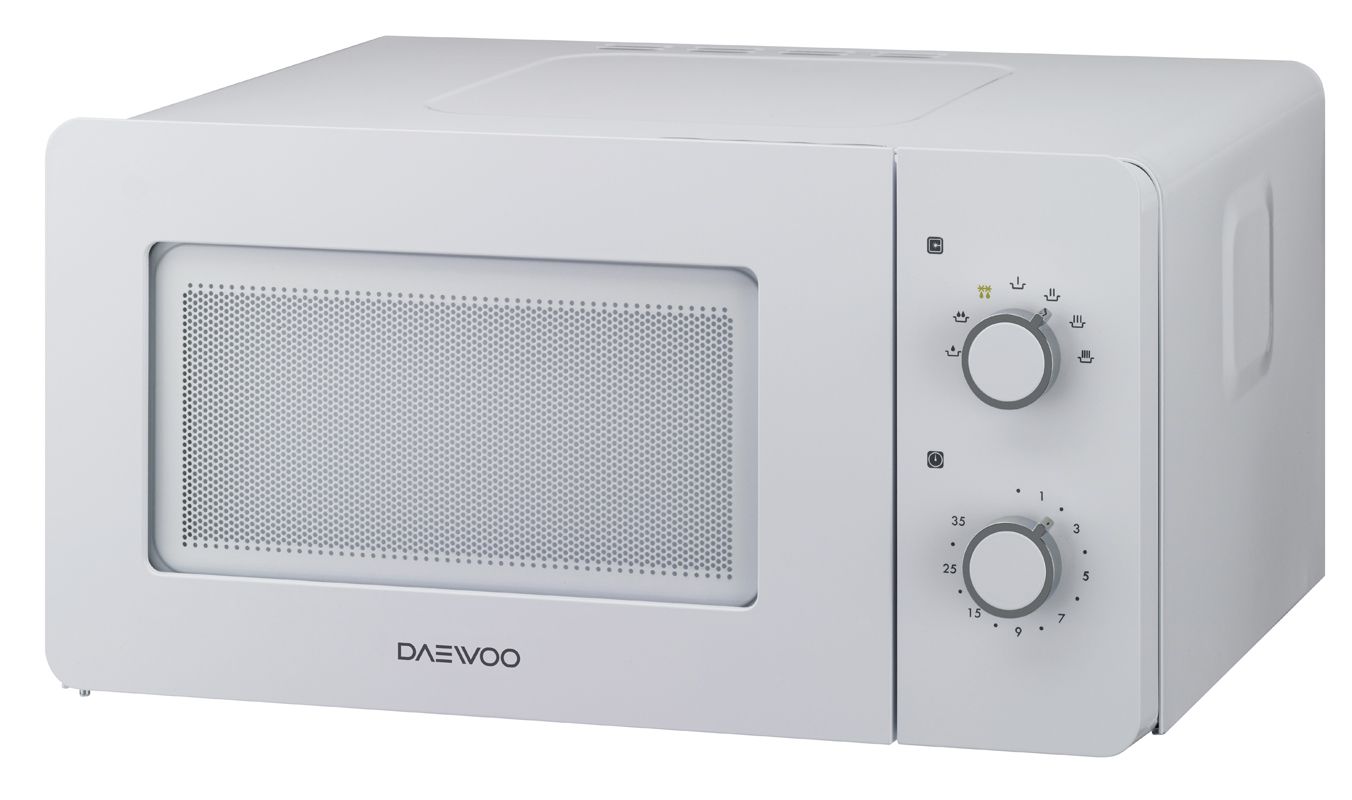 Микроволновая печь DAEWOO KOR-5A18W с механическим типом управления, объемом 15 л., с выходной мощностью 600Вт. Модель имеет самый компактный размер.