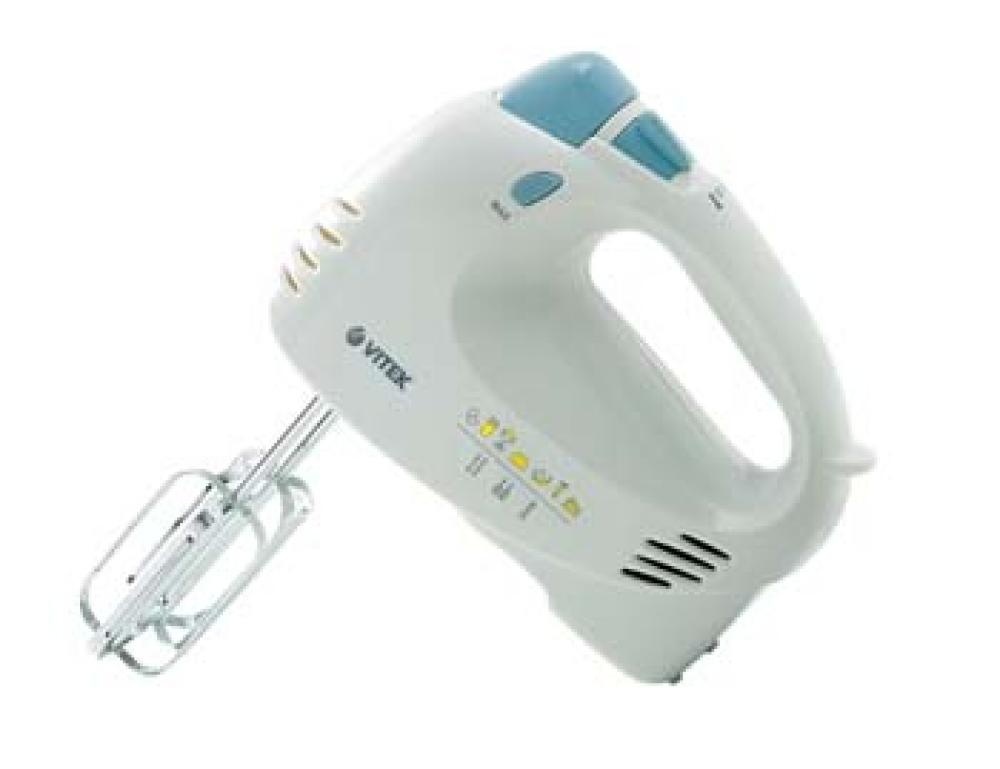 Миксер Vitek VT-1404 может работать как в турборежиме, с дальнейшим увеличением количества вращений, так и на пяти типах скоростей. Мощность этой модели составила около 300 ватт, что неплохой показатель для миксера.