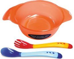 Детская посуда меняет цвет при контакте с горячей пищей.