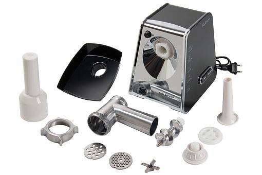 Она обладает отличными техническими характеристиками - такими, как максимальная мощность 1500 Вт, производительность 0,6 кг/мин, функция реверса, а также защита двигателя от перегрузки. Вы с легкостью можете создавать кулинарные шедевры у себя на кухне. Мясорубка имеет 2 решетки с отверстиями малого и среднего диаметра, а также дополнительную насадку для приготовления колбасок и киббе.