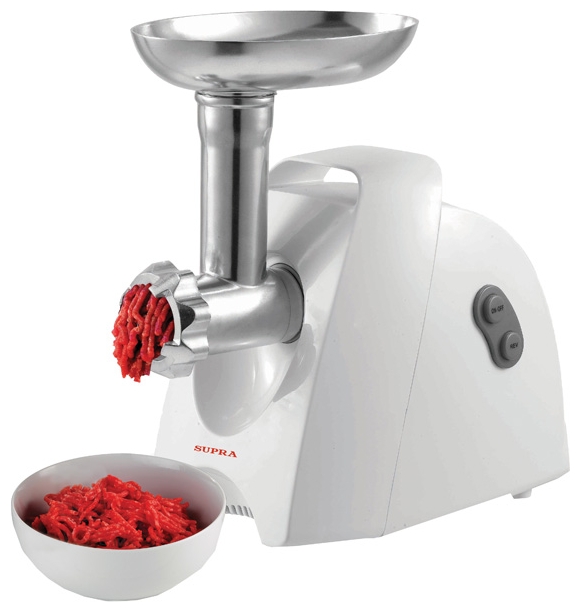 Универсальная электромясорубка Supra MGS-2000T мощностью 2000 ВТ может заменить целый кухонный комбайн. Три перфорированных диска из нержавеющей стали с отверстиями разного диаметра позволяют сделать крупнорубленый фарш для бифштексов и нежный фарш для детского и диетического питания.