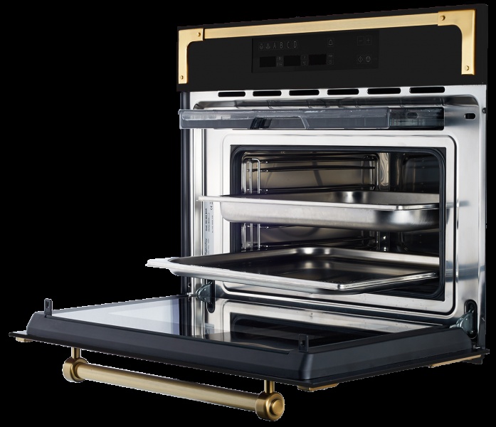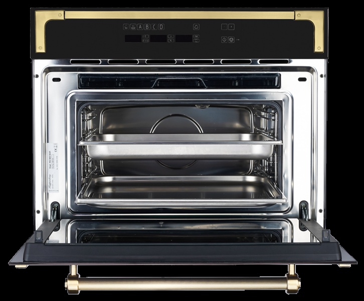 Пароварка имеет двенадцать режимов приготовления три из которых можно занести в память прибора. Прекрасными дополнениями к данной модели являются полностью сенсорная панель управления, удобная откидная дверца и галогенное освещение. А уникальный дизайн с бронзовыми рамками по периметру и удобная ручка не оставят равнодушным любого пользователя.