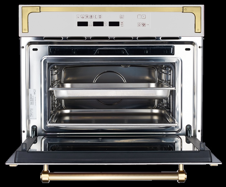 Прекрасными дополнениями к данной модели являются полностью сенсорная панель управления, удобная откидная дверца и галогенное освещение. А уникальный дизайн с бронзовыми рамками по периметру и удобная ручка не оставят равнодушным любого пользователя.