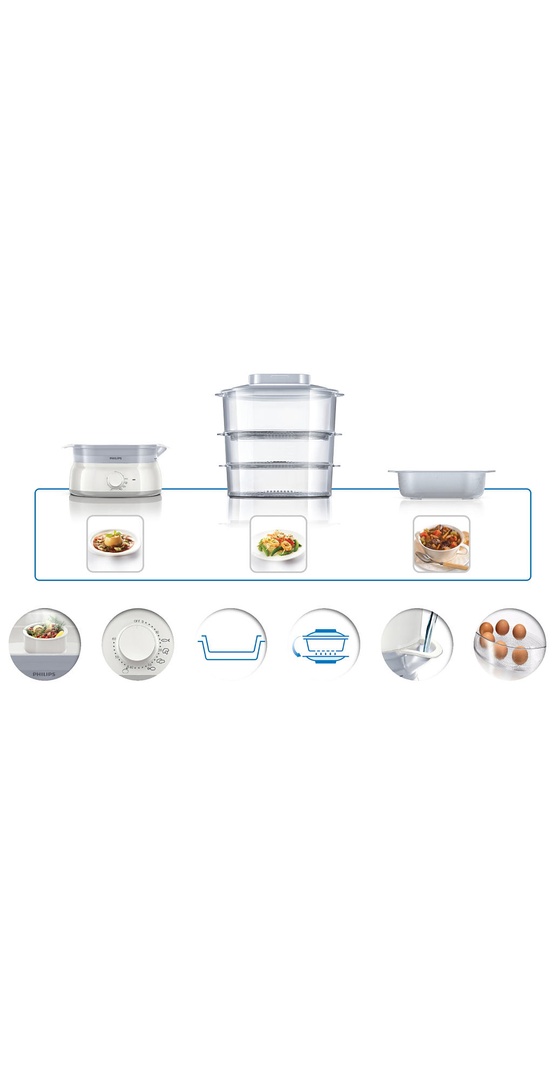 Благодаря уникальному контейнеру для трав и специй в пароварке Philips вкус блюд на пару будет еще более насыщенным. Просто положите свои любимые приправы в контейнер, а пар сделает все остальное. Горячий пар насытит блюда изысканными ароматами Ваших любимых приправ.