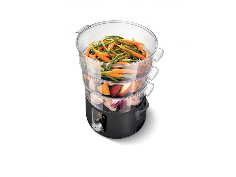 Эта высококачественная пароварка с уникальным контейнером для трав и специй позволяет насытить блюда на пару изысканными ароматами любимых приправ. Цифровой таймер и функция поддержания тепла помогут вам приготовить вкуснейшие блюда.