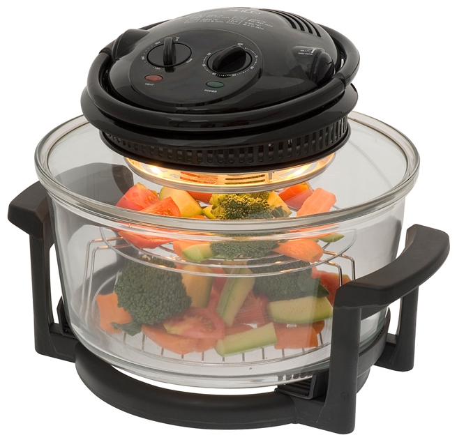 Для приготовления в аэрогриле используется поток воздуха, разогретого до высокой температуры. Поток горячего воздуха обдувает готовящееся блюдо равномерно со всех сторон при помощи встроенного вентилятора. При таком способе готовки полностью сохраняются все полезные вещества и микроэлементы, входящие в состав продуктов.