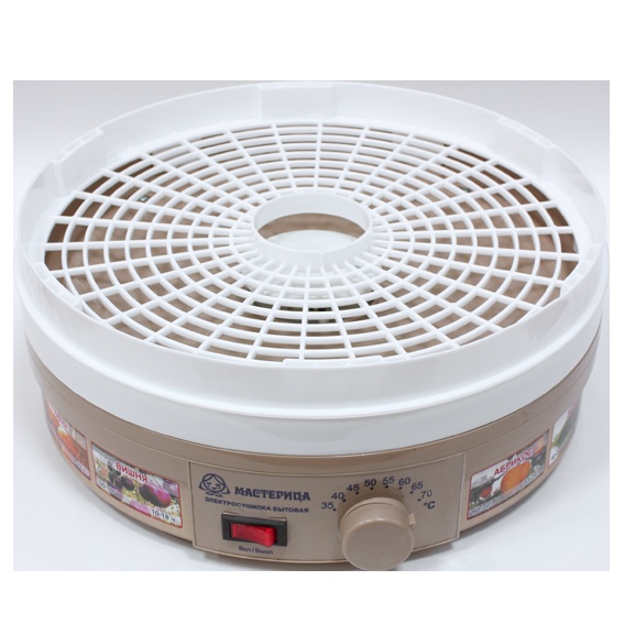 Сушилка для овощей Мастерица ЭСБ-15/25-450, с вентилятором, мощность 450 Вт, 7 поддонов, регулировка поддонов по высоте от 2,5 мм - до 50 мм, объем сушильной камеры от 15 до 25 л, регулятор температуры от 35 до 70 градусов, номинальная загрузка одного поддона не более 1 кг, советы по сушке и подготовке продуктов, эффективность сушки - 80 % от массы исходного продукта, минимальный расход электроэнергии.