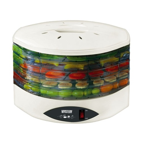 Ягоды и фрукты прекрасно подходят для приготовления натуральных киселей и компотов, а овощи можно использовать для супов и вторых блюд. Благодаря 5 поддонам сушка MYSTERY MDH-322 позволяет сразу загрузить несколько килограммов продуктов.