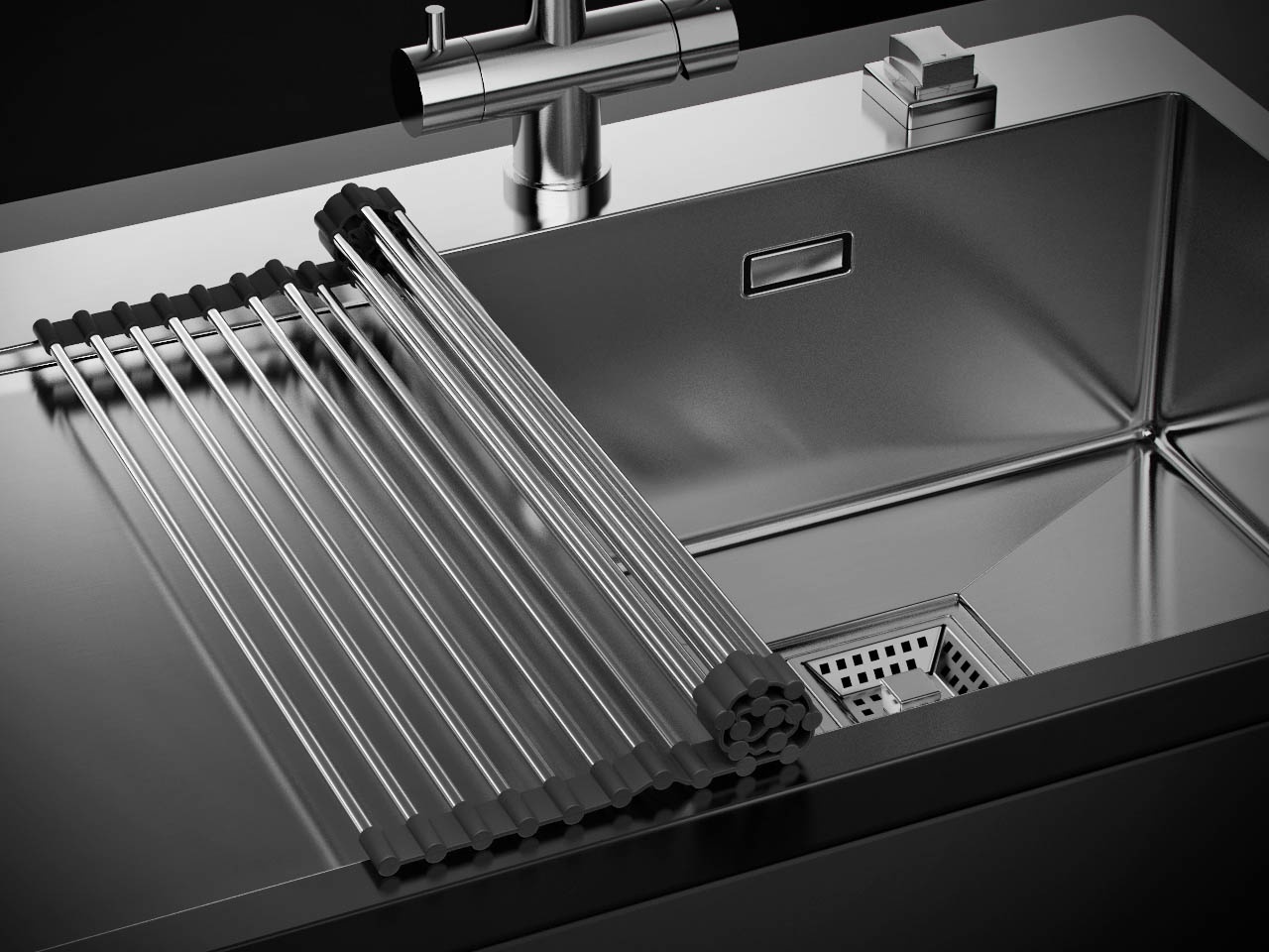 - Ролл-мат OMOIKIRI закрывает всю чашу мойки, тем самым обеспечивая дополнительное удобство в работе