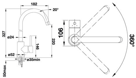 Один из самых популярных в России смесителей - Blanco Mida - обладает высоким дугообразным изливом. Большой плюс данного смесителя - относительно невысокая цена. Прекрасно сочетается с любыми мойками из материала silgranit.