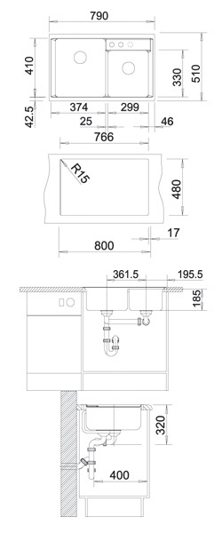 Двухчашевая мойка, не оборачиваемая. Дополнительная чаша имеет площадку для установки смесителя, клапана-автомата и крана для питьевой воды. Blanco Axia II 8 - двойной комфорт и эстетичность вдоль одной линии. При желании гранитную мойку можно дополнить аксессуарами: элегантной разделочной доской из закаленного стекла (466х340 мм), которая идеально закроет чашу и будет служить дополнительной рабочей зоной и коландером из нержавеющей стали.