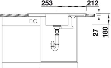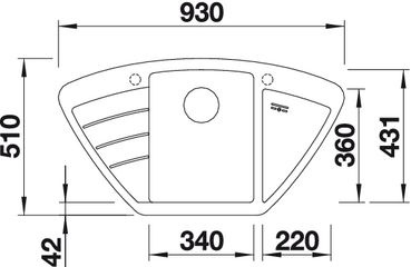 Врезная прямоугольная полуторная мойка выполнена из гранита оснащена крылом крыло расположено слева размеры (ШхГ) 93х51 см. Угловая мойка. Бланко Zia 9E, производится.